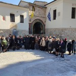 Μετά την πρωινή Θεία Λειτουργία ένα πούλμαν με πάνω από πενήντα ενορίτες και ενορίτισσες ξεκίνησε με πρώτο προορισμό την Ιερά Μονή του Τιμίου Προδρόμου Σερρών. Η Μονή κτισμένη το 1270 αποτελεί ένα εκπληκτικής ομορφιάς μνημείο της βυζαντινής τέχνης. Ξεναγηθήκαμε από τις αδελφές στο καθολικό της μονής, όπου ενημερωθήκαμε με λεπτομέρειες για το ιστορικό της, καθώς και για τις σεβάσμιες μορφές ιεραρχών και Αγίων της Εκκλησίας μας που κατά το παρελθόν έζησαν στο μοναστήρι. Επισκεφθήκαμε το λαογραφικό μουσείο και κατόπιν απολαύσαμε το φιλόξενο κέρασμα. Η Γερόντισσα Φεβρωνία μάς απηύθυνε λόγους μητρικούς και παραινετικούς προτρέποντάς μας στις δύσκολες εποχές που διανύουμε να μην κατεχόμαστε από φόβο και πανικό, αλλά να ζούμε με απόλυτη εμπιστοσύνη στην πρόνοια του Θεού.