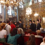 Την επομένη αλλάξαμε…ήπειρο! Με πλοίο από το λιμάνι της Πόλης περάσαμε στην ασιατική πλευρά, στη Χαλκηδόνα. Περπατήσαμε στους δρόμους της με τα καφέ και την αγορά, για να επισκεφθούμε τον Ιερό Ναό της Αγίας Ευφημίας. Μας περίμενε ο σεβάσμιος π. Ναυκράτιος, ο οποίος με γλυκύτητα και καλοσύνη μας ξενάγησε. Κατόπιν στη δροσερή εσωτερική αυλή του ναού μάς πρόσφερε ένα εξαιρετικό κέρασμα. Ακολούθησε η επίσκεψή μας στο επισκοπικό κτίριο και στον Ιερό Ναό της Αγίας Τριάδος, όπου γίναμε αποδέκτες εγκάρδιας υποδοχής και ξενάγησης από τον πρωτοσύγκελο π. Ευγένιο και τον π. Βασίλειο. Από το λιμάνι επιβιβαστήκαμε σε καράβι με προορισμό την υπέροχη Πρίγκηπο, το τέταρτο και μεγαλύτερο νησί των Πριγκηποννήσων. Εντυπωσιαστήκαμε από τα θαυμάσια ξύλινα αρχοντικά της του περασμένου αιώνα. Καταλήξαμε στον Ιερό Ναό του Αγίου Δημητρίου. Εκεί μας περίμενε ο π. Δημήτριος, ο οποίος με περισσή ευγένεια μάς πληροφόρησε για την ιστορία του ναού και του τόπου. Η εκδρομή μας στην Πρίγκηπο ολοκληρώθηκε με την επίσκεψή μας ψηλά στον λόφο, στον Άγιο Γεώργιο τον Κουδουνά, όπου ο π. Ιεζεκιήλ μάς μίλησε για τη θαυματουργική εύρεση της εικόνας του Αγίου και μας δώρισε ως ενθύμιο μικρά κουδουνάκια. Πριν πάρουμε το καράβι της επιστροφής, γευματίσαμε σε παραλιακό εστιατόριο του νησιού με τους γλάρους να πραγματοποιούν …εφορμήσεις στα πιάτα μας ανεβάζοντας έτσι την εύθυμη διάθεσή μας και κάνοντας αλησμόνητο το μεσημεριανό μας. Στη σχεδόν τετράωρη επιστροφή με το καράβι αφεθήκαμε στη μαγεία του δειλινού με την πανέμορφη εικόνα της Πόλης να μας υποδέχεται με τις νυχτερινές φωταψίες των μνημείων της.