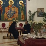 Μεσημέρι πια φτάσαμε στην όμορφη πόλη της Καβάλας για μεσημεριανό. Αφού γευθήκαμε νόστιμους μεζέδες στα παραλιακά ταβερνάκια, πήραμε τον δρόμο της επιστροφής με τελευταίο προορισμό μας την Ιερά Μονή Παντοκράτορος στο Μελισσοχώρι για να παρακολουθήσουμε τον εσπερινό. Οι αδελφοί της Μονής μάς υποδέχτηκαν πολύ εγκάρδια. Προσκυνήσαμε τους πολύτιμους θησαυρούς της Μονής, την εικόνα της Παναγίας μας, την Κυρά των Αγγέλων, και τα ιερά Λείψανα πολλών αγίων μεταξύ των οποίων και αυτό του Αγίου Ιωάννου του Ελεήμονος του οποίου κατά όμορφη συγκυρία ξημέρωνε η εορτή. Η κατανυκτική ακολουθία του εσπερινού μάς μετέδωσε αγιορείτικη γεύση . Ο ηγούμενος της Μονής μάς καλωσόρισε και μας απηύθυνε σύντομη και πολύ διδακτική πνευματική ομιλία. Κεραστήκαμε το παραδοσιακό μοναστηριακό λουκούμι μαζί με τον απογευματινό καφέ και άλλα κεράσματα στο εντυπωσιακό αρχονταρίκι της Μονής.