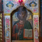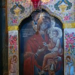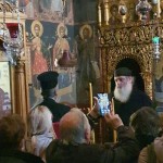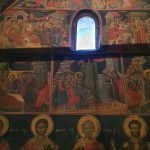 Κατευθυνθήκαμε αμέσως στον Ιερό Ναό, όπου ακούσαμε μια σύντομη αναφορά της ιστορίας της Μονής. Κατόπιν, μέσα στον λιγοστό υποβλητικό φωτισμό των κεριών, περιστοιχισμένοι από τις μορφές των Αγίων στις παλαιές αγιογραφίες και εικόνες, παρακολουθήσαμε τον Εσπερινό, την Ιερά Παράκληση της Παναγίας μας και το Απόδειπνο, με την κατάνυξή μας να κορυφώνεται από τις μελωδικές ταπεινές φωνές των αδελφών.